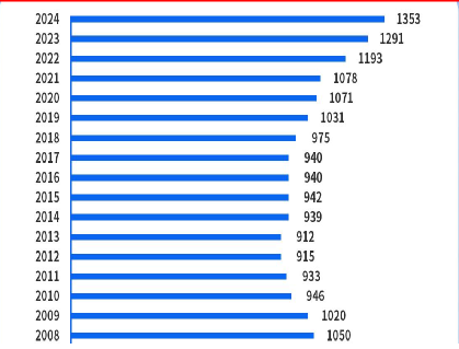 根据网上公布的数据显示: 2024年全国高考报名人 数为1353万 , 比2023年多出 62万人 , 再次创下历史新高! !!