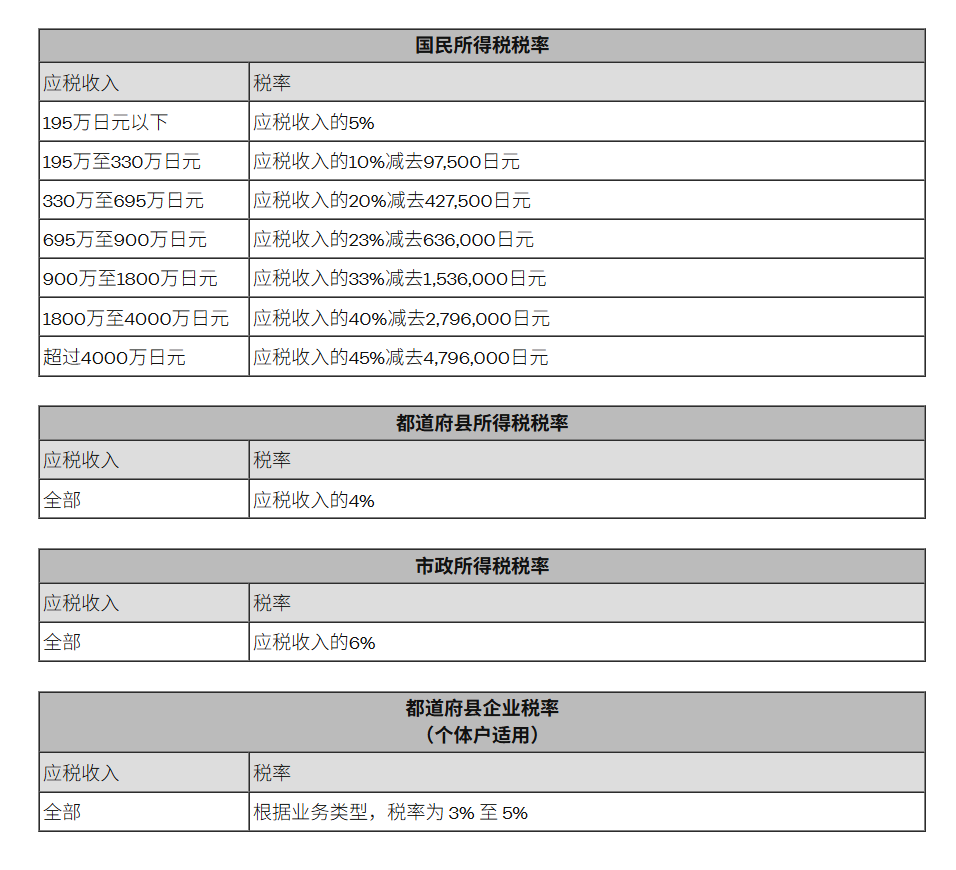 日本的税金分为国税、都道府县税和市町村税,针对收入、财产和消费进行征收。以下是个人需要缴纳的主要税种概述: