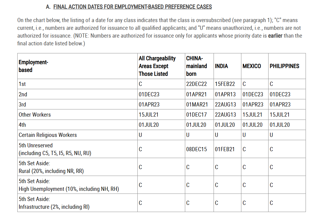 需要向大家说明一下,表A所体现的是具有签证名额的排期情况。也就是说,当您的排期日期早于表A上所显示的日期时,这就表明您将获得一个绿卡名额。