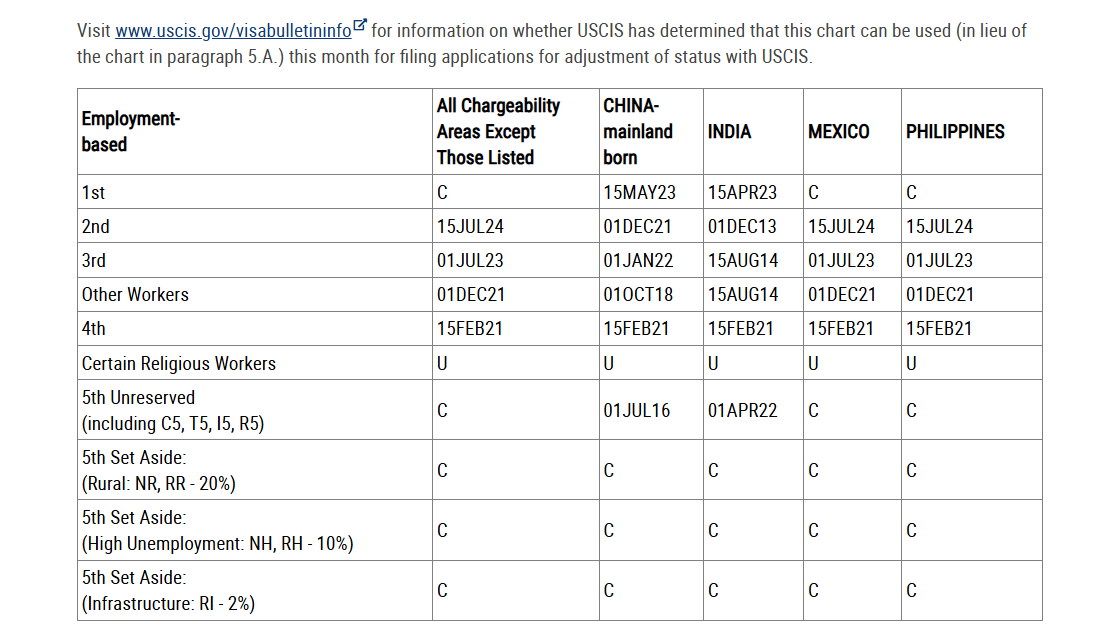 而表B代表的是递件排期,它主要是适用于那些希望在美国境内调整身份的申请人。对于不在美国境内的申请人而言,需要按照领馆处理流程来操作,这种情况下就应当参考表A。