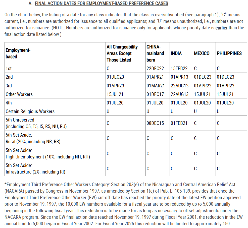 EB-5预留签证类别(乡村、高失业地区、基建项目):无排期。