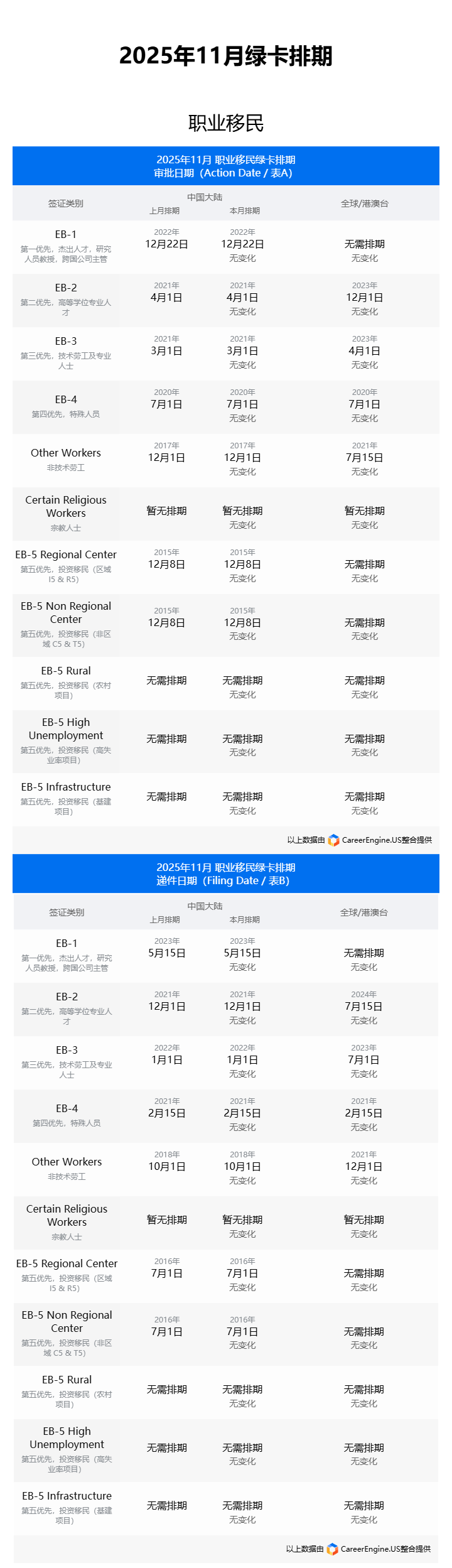 美国国务院签证办公室正式对外发布了 2025 年11月职业移民排期的详细情况。接下来,就让我们一同深入了解2025年11月排期的具体详情。