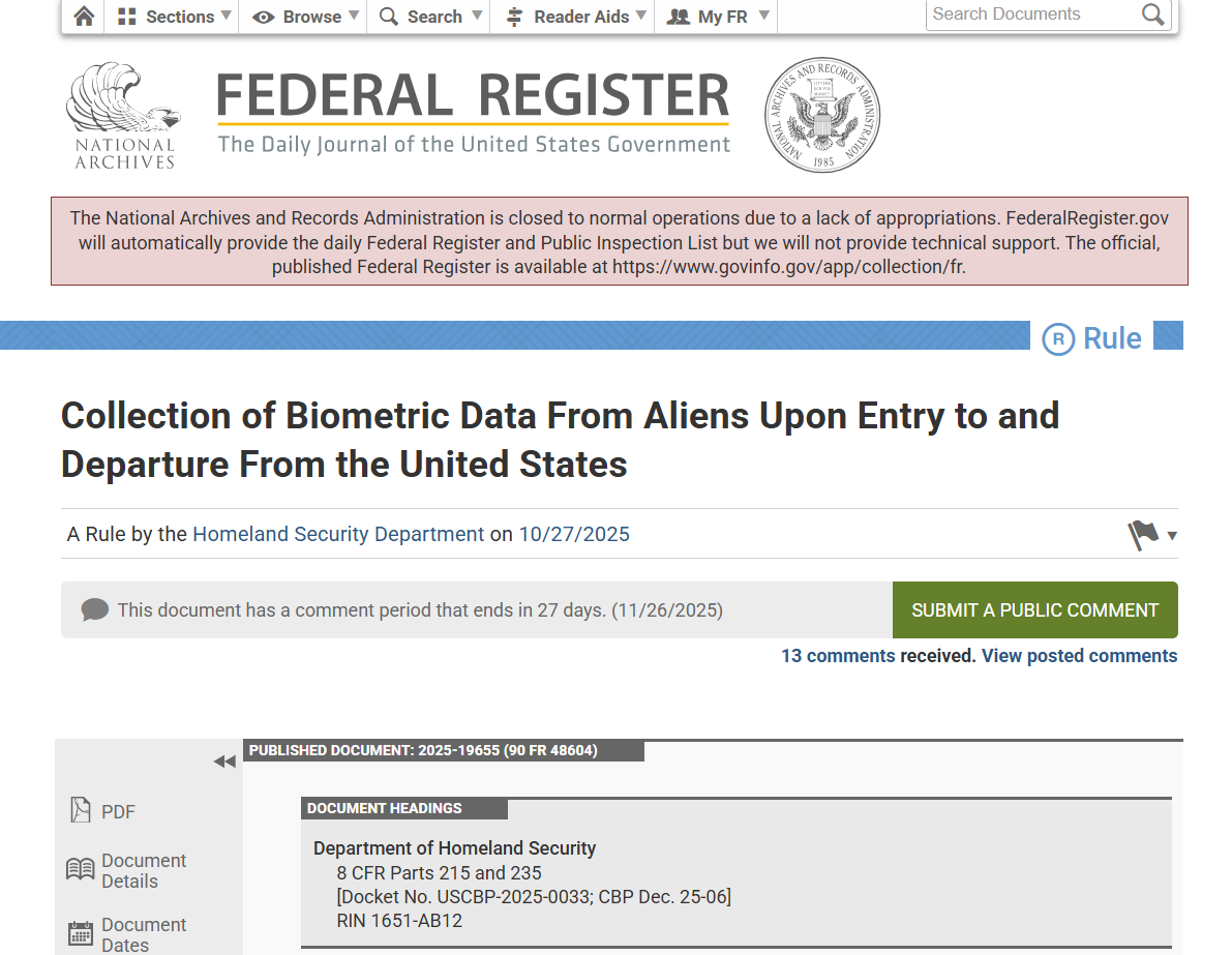 核心要求:在入境和出境时,都必须通过面部识别技术进行拍照,并与政府数据库中的照片进行比对。