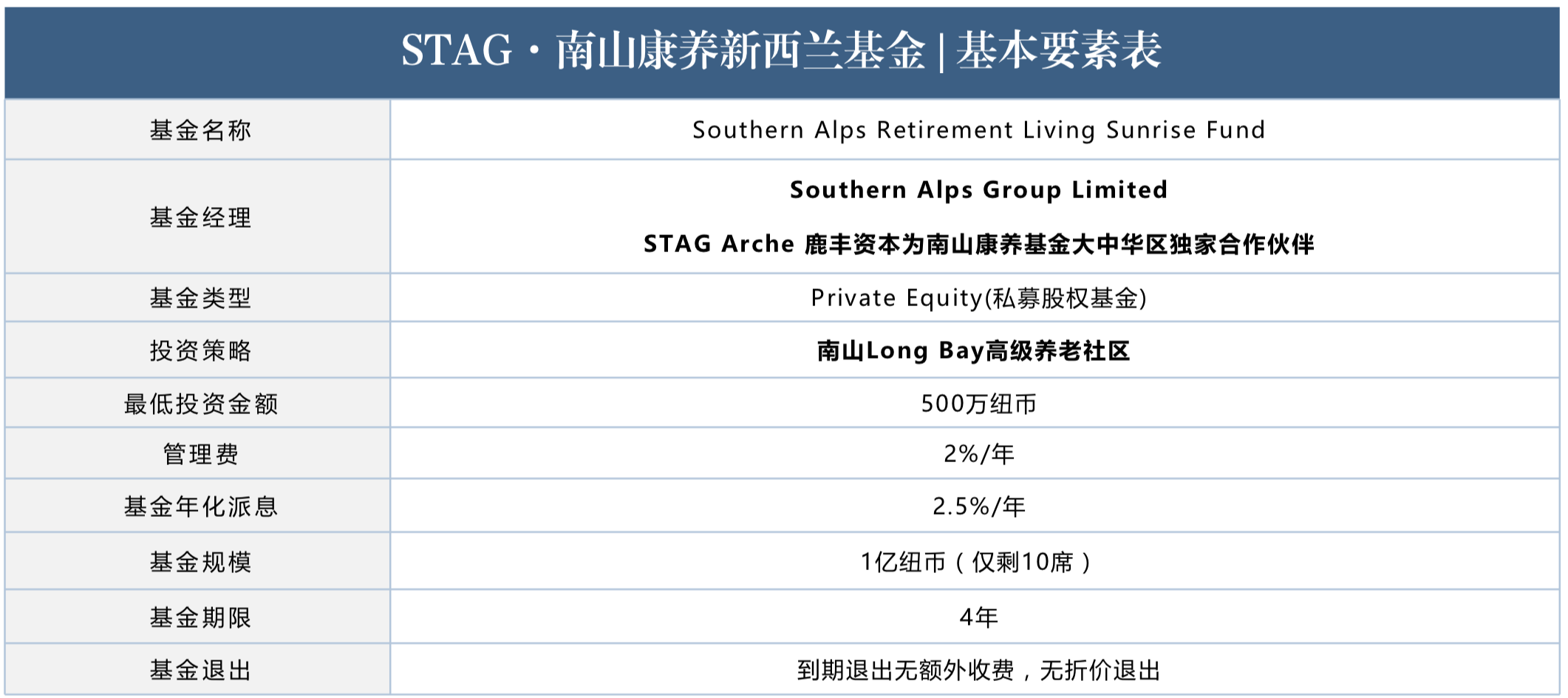 •STAG x 南山康养新西兰基金 | 基本要素表