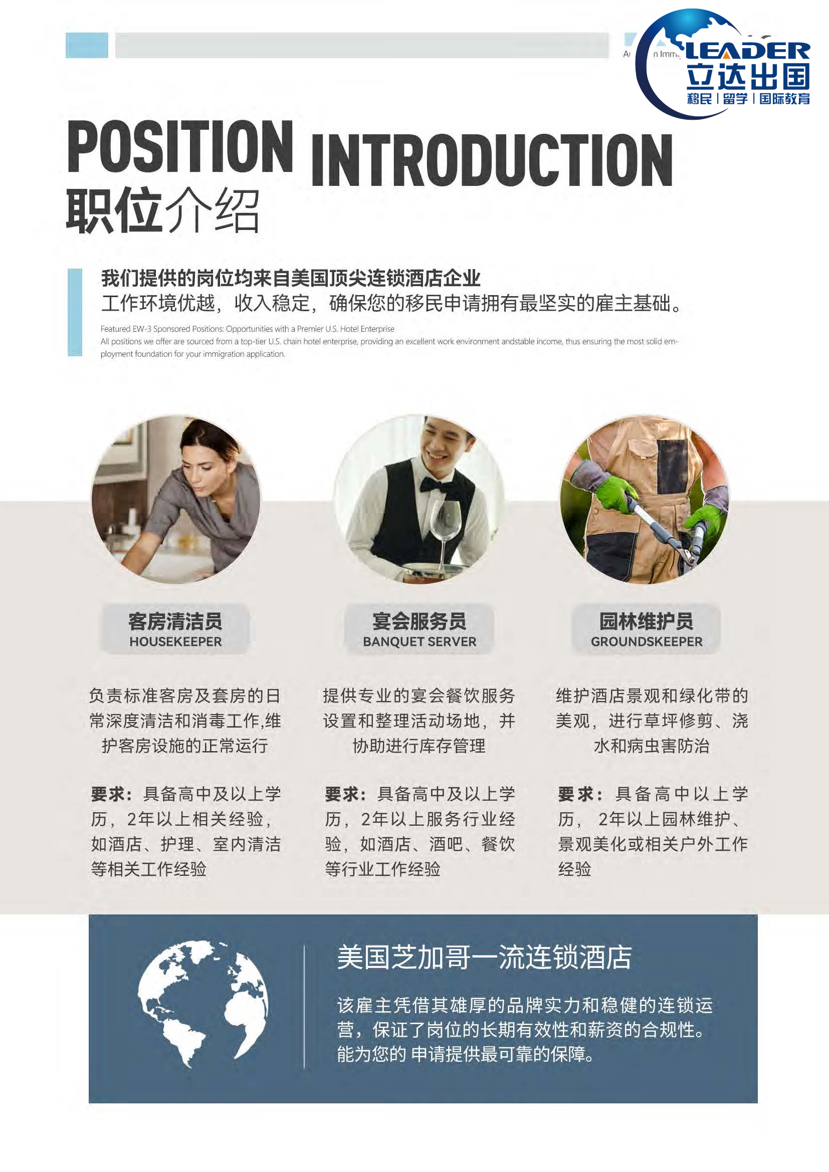 专业护航: 立达出国全程提供岗前辅导、签证协助、落地保障及移民申请支持,让你的赴美之路无后顾之忧。