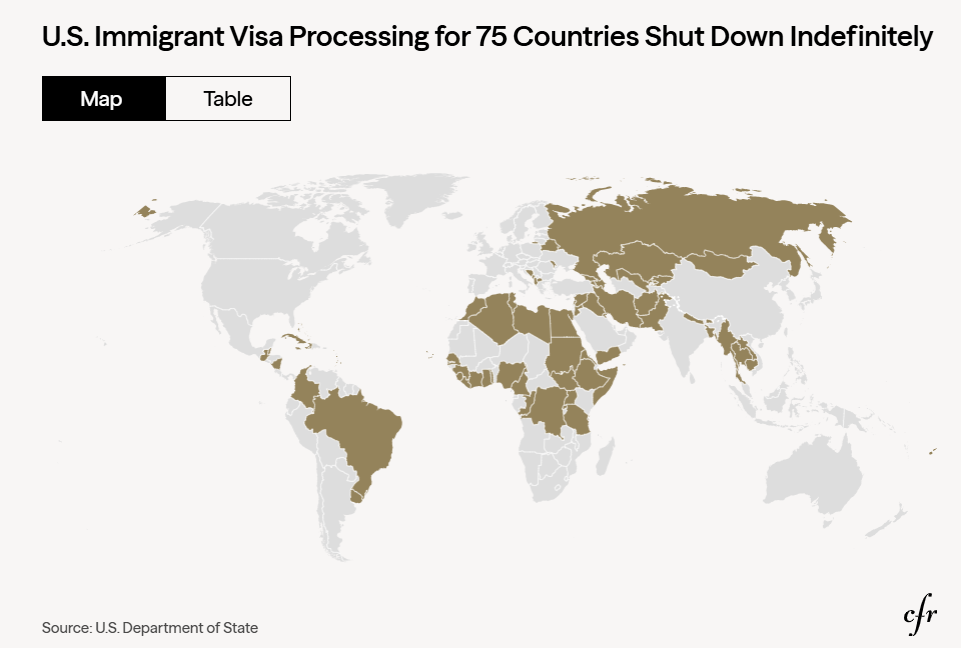最近大家都被上个月,也就是1月21日,特朗普针对75国的“签证暂停令”吓到了。