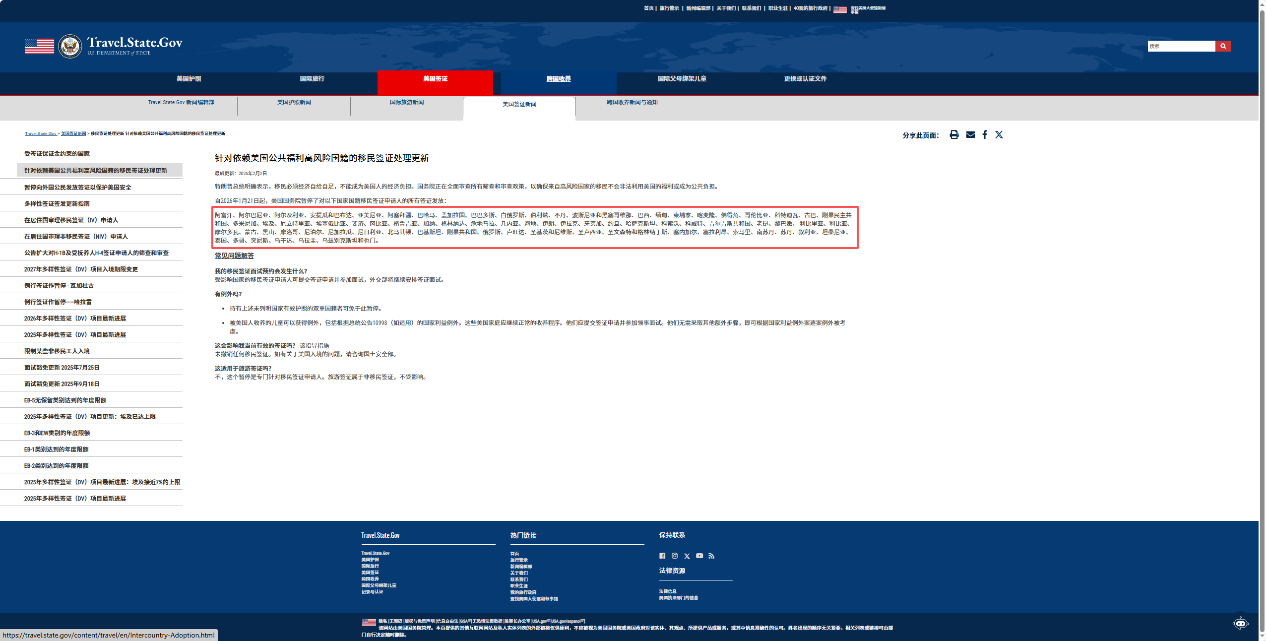 官方实锤: 我们去查了美国国务院(DOS)真正的官方公告,那份“暂停签证发放的75国名单”里,压根就没有中国!