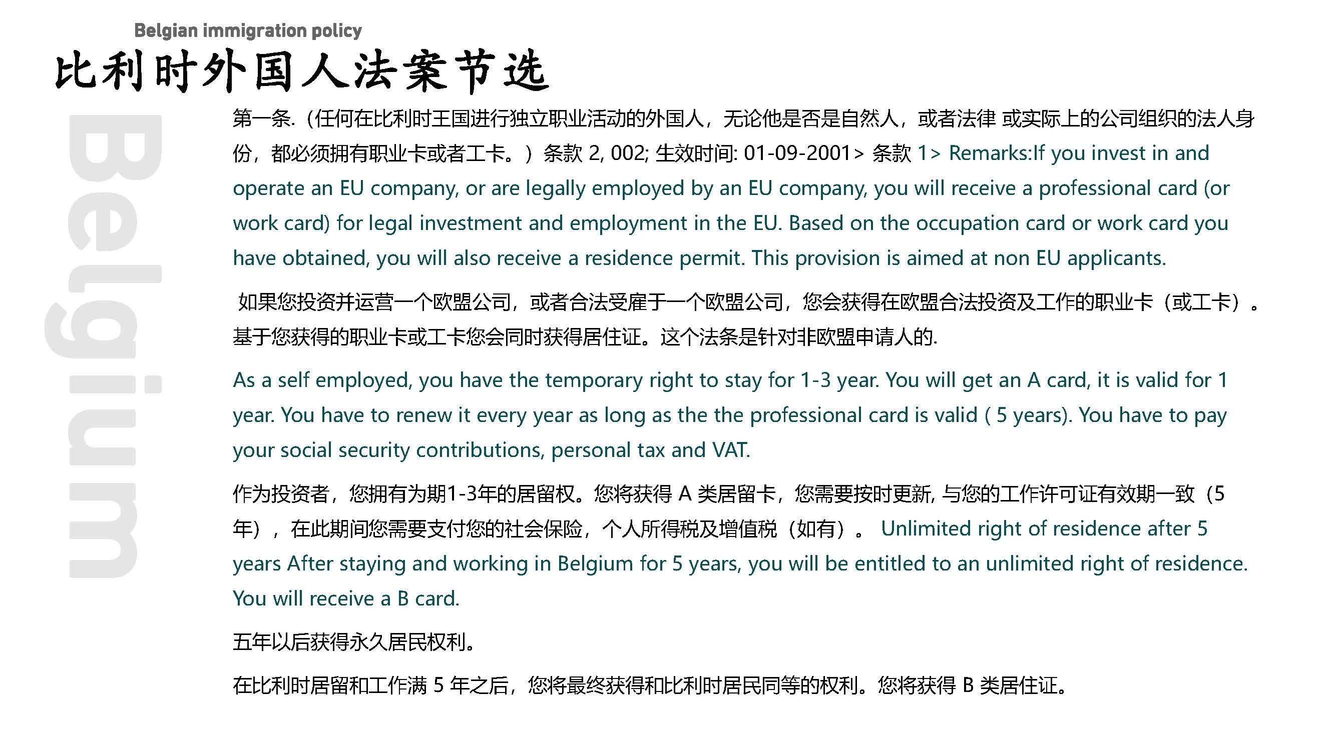 比利时工卡套餐(以雇员身份申请):非欧盟公民的“敲门砖”