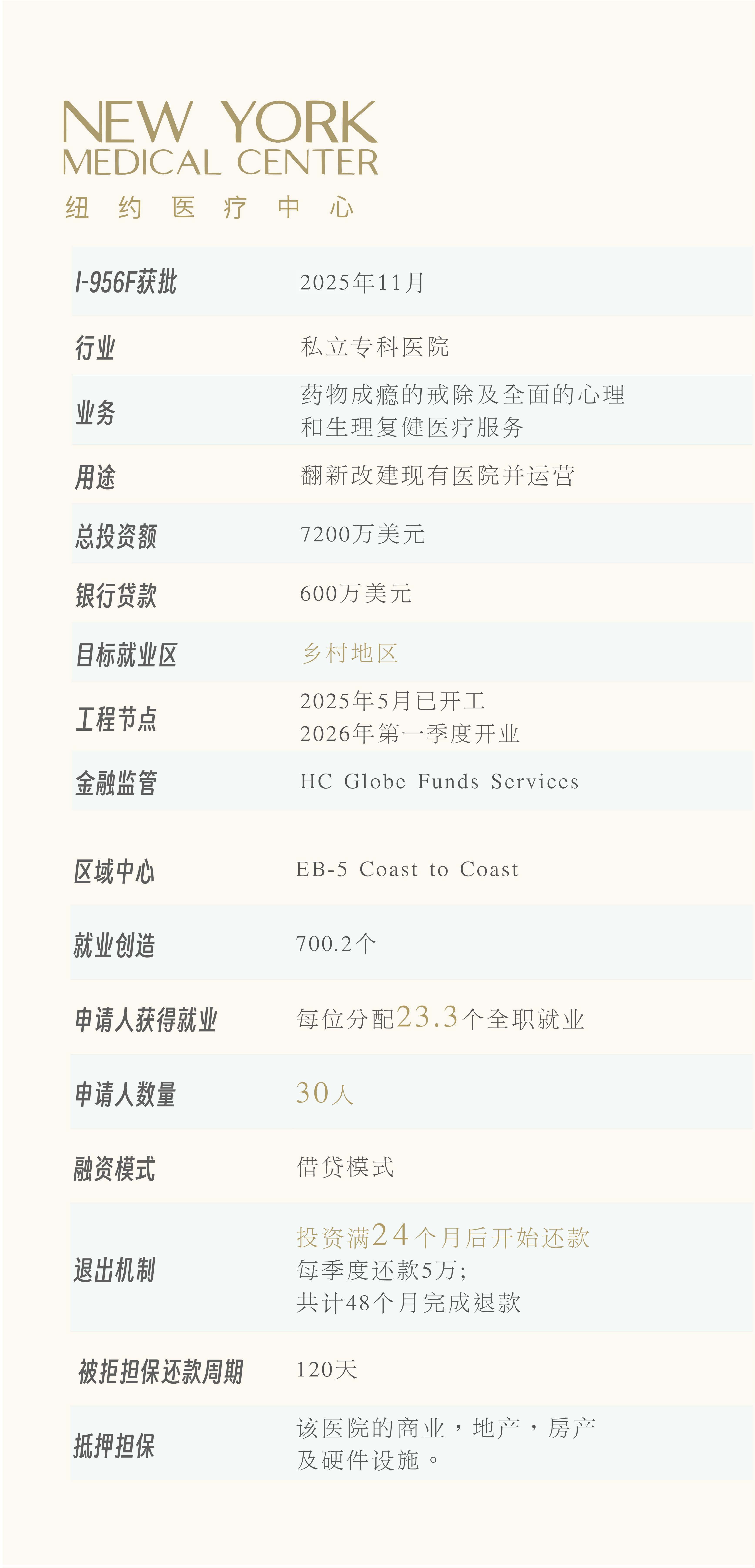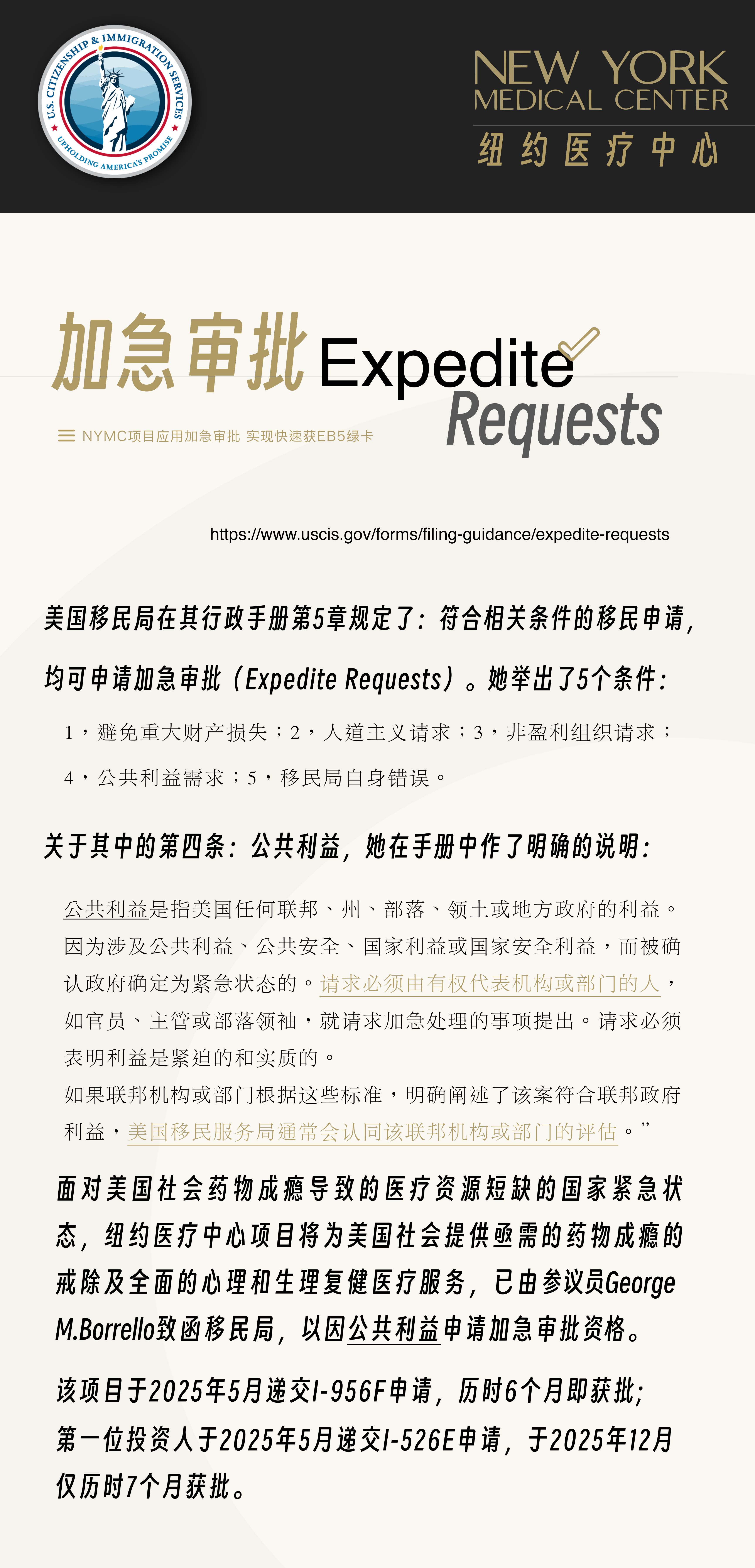 而我们现在有一个罕见的让移民局“开绿灯”的EB-5项目——纽约医疗中心